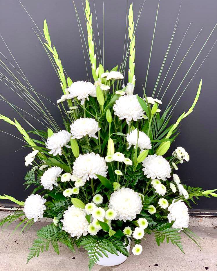 Expertly arranged with stunning white blooms, our White Purity Arrangement is the perfect choice for any occasion.